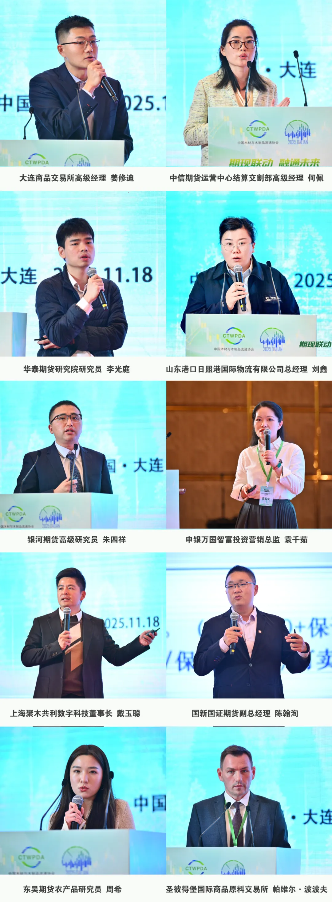 主旨演讲环节,大连商品交易所高级经理姜修迪、中信期货运营中心结算交割部高级经理何佩、华泰期货研究院研究员李光庭、山东港口日照港国际物流有限公司总经理刘鑫、银河期货高级研究员朱四祥、申银万国智富投资营销总监袁千茹、聚木网董事长戴玉聪、国新国证期货副总经理陈翰洵、东吴期货农产品研究员周希、圣彼得堡国际商品原料交易所木材分析专家帕维尔·波波夫围绕原木期货市场运行与功能发挥、产业风险管理实践、国内外木材产业聚集地发展现状及市场展望等核心议题展开了分享。
